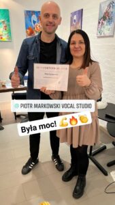 Certyfikowana trenerka w International Voice Teachers of MIX (IVTOM).